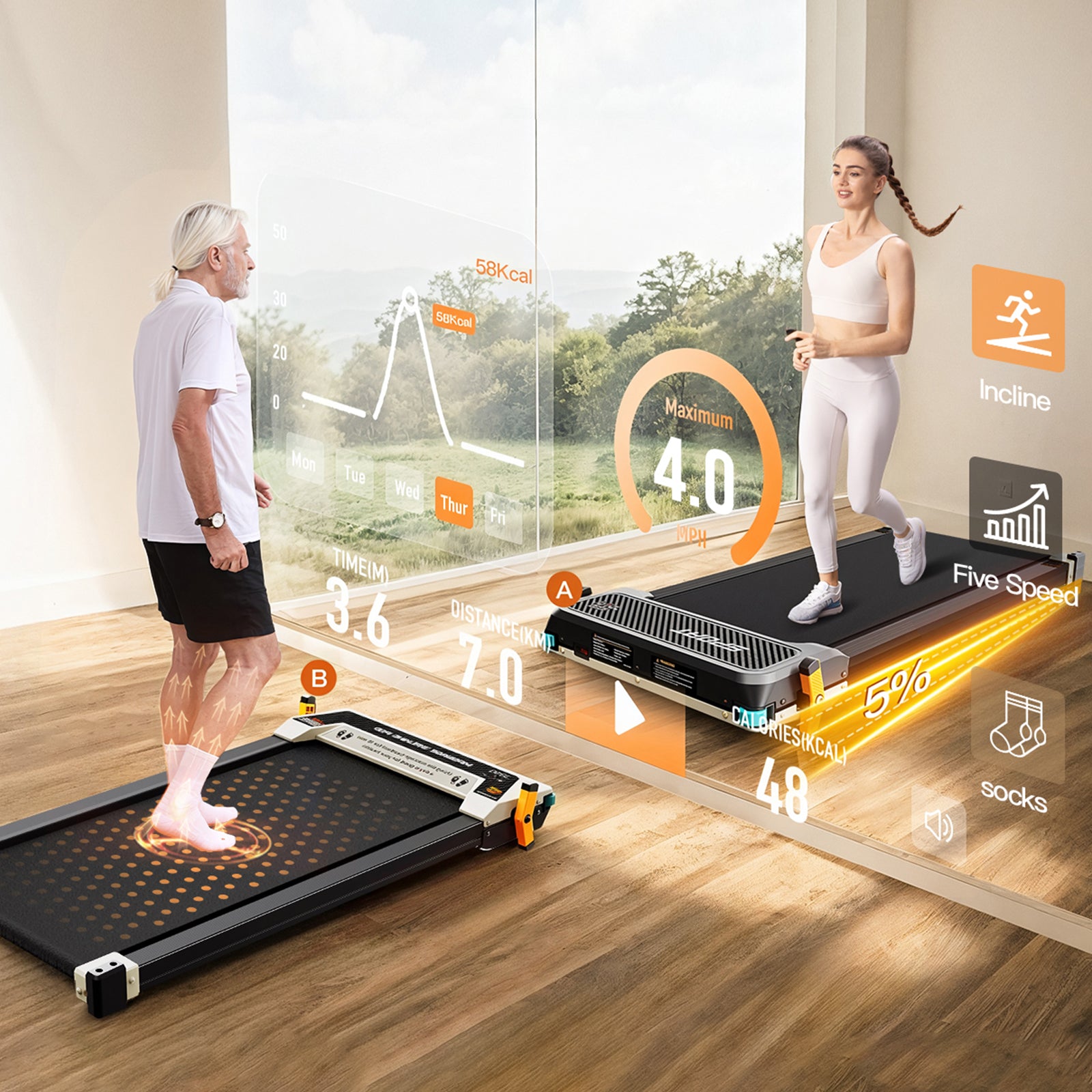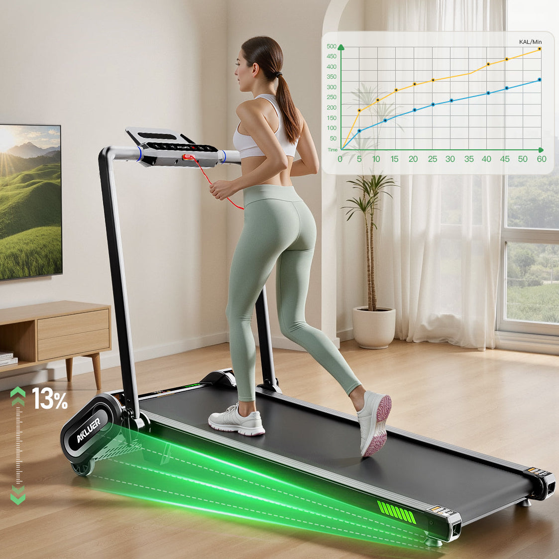 An advanced walking pad with auto incline for more efficient workouts. Burn more calories in less time while staying comfortable at home. Ideal for users who want better results without increasing workout time or effort.